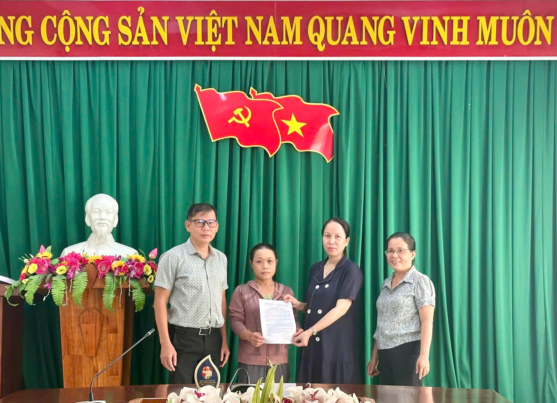 Ảnh: Trao quyết định và kinh phí hỗ trợ từ Dự án cho gia đình cháu T