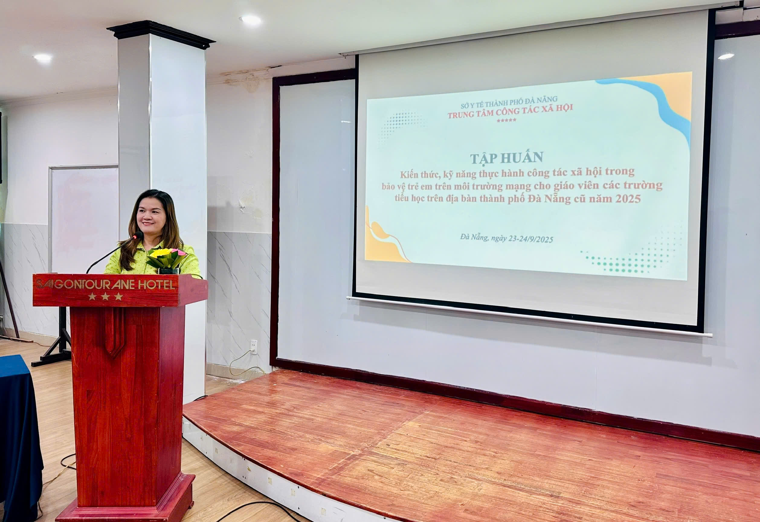 Thực hiện Chương trình phát triển công tác xã hội (CTXH) trên địa bàn thành phố Đà Nẵng năm 2025, sáng ngày 23/9/2025, Trung tâm CTXH thành phố Đà Nẵng khai mạc lớp tập huấn kiến thức, kỹ năng thực hành CTXH trong bảo vệ trẻ em trên môi trường mạng cho giáo viên các trường Tiểu học trên địa bàn thành phố Đà Nẵng (cũ).