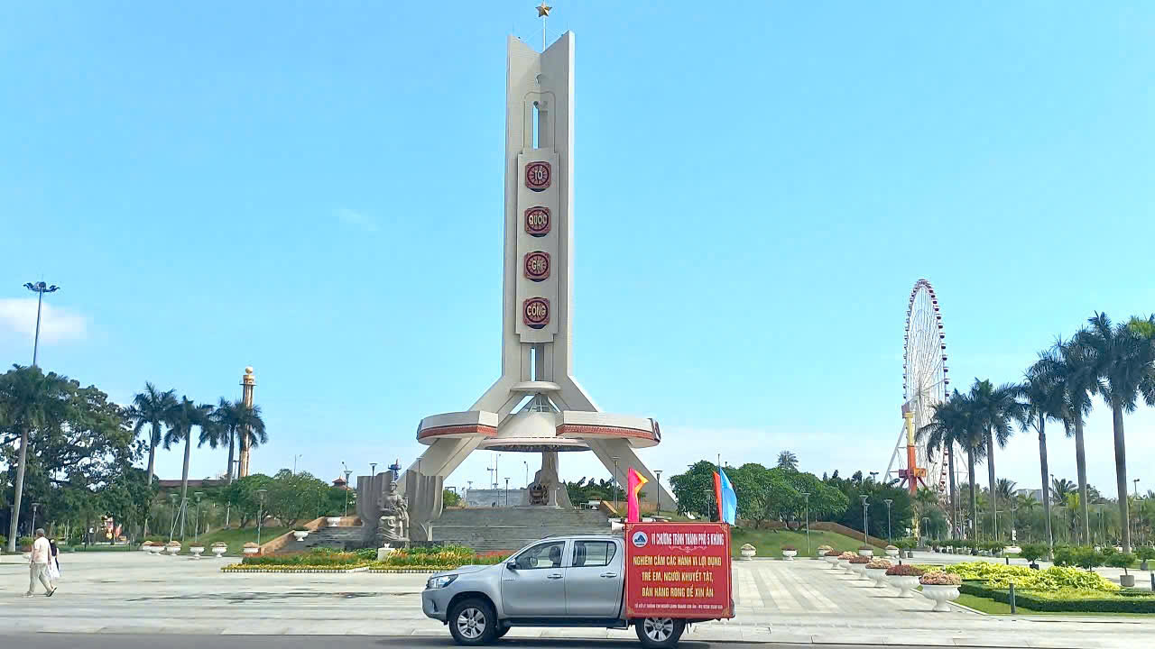 Ảnh: Xe tuyên truyền tại khu vực Tượng đài 2/9 - Hải Châu